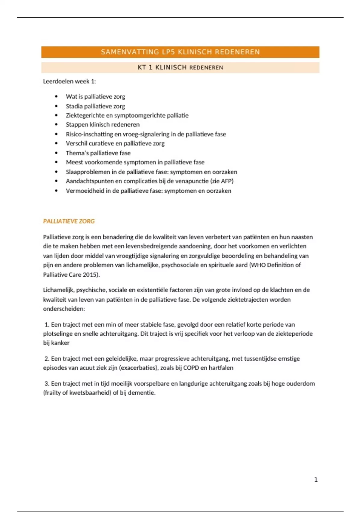 SAMENVATTING LP5 KLINISCH REDENEREN
