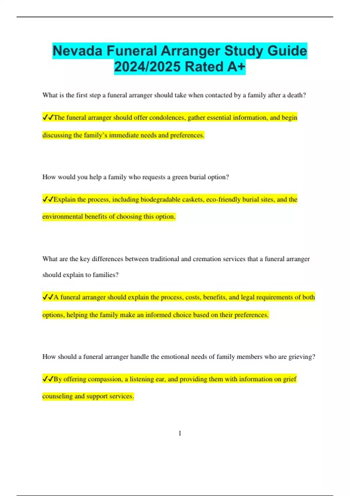 ✔✔The funeral arranger should offer condolences, gather essential information, and begin