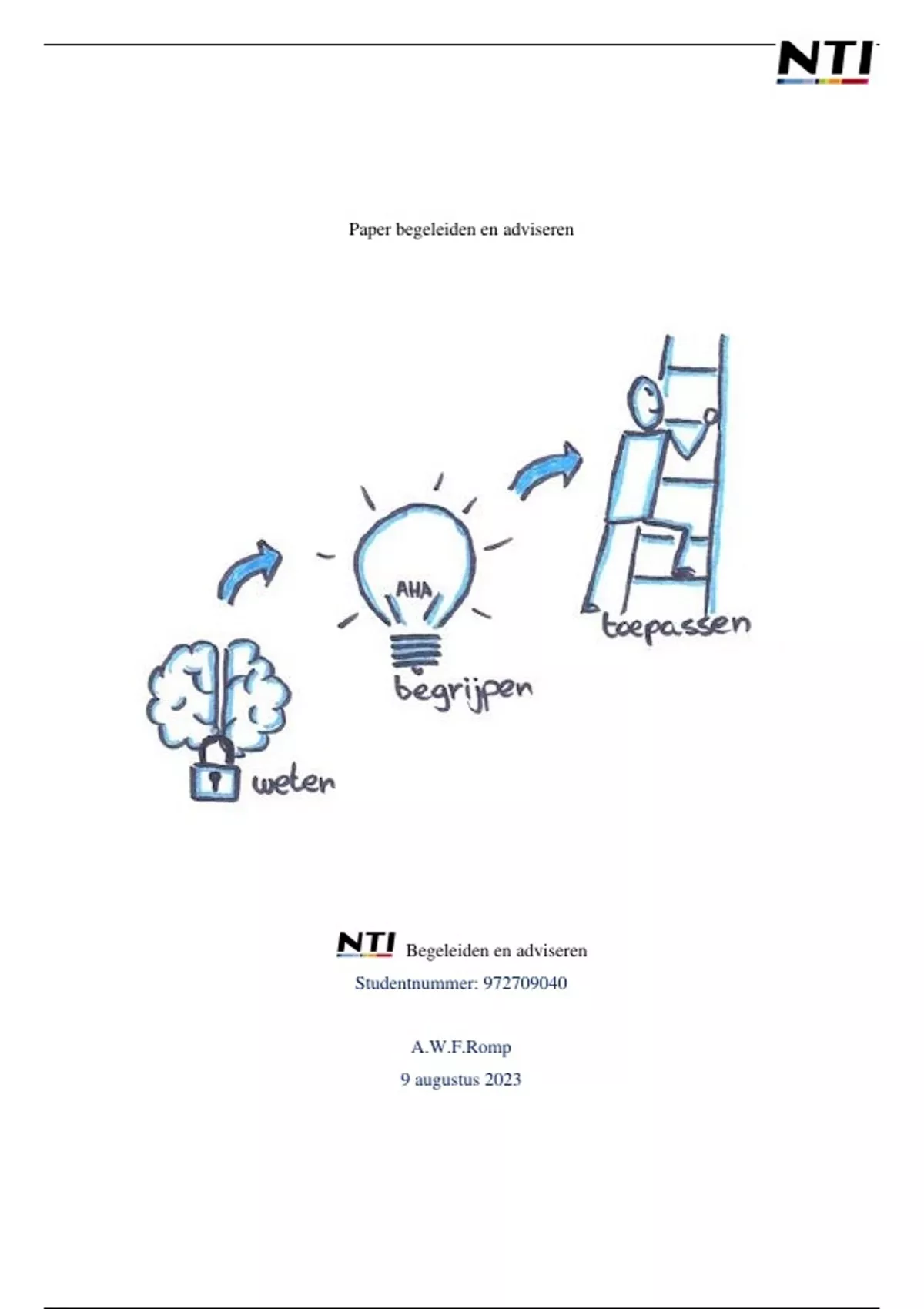 Deze paper, begeleiden en adviseren, is onderdeel van leerjaar 3, Toegepaste Psychologie, aan