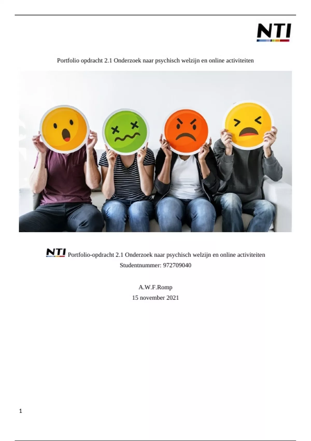 Portfolio opdracht 2.1 Onderzoek naar psychisch welzijn en online activiteiten
