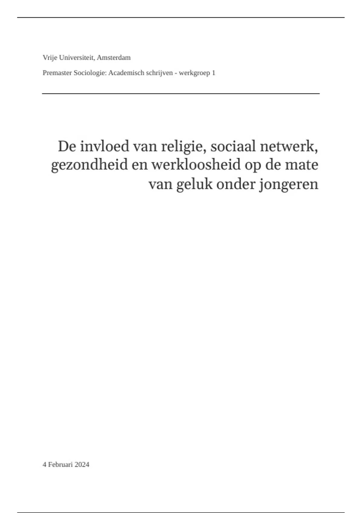 Premaster Sociologie: Academisch schrijven - werkgroep 1
