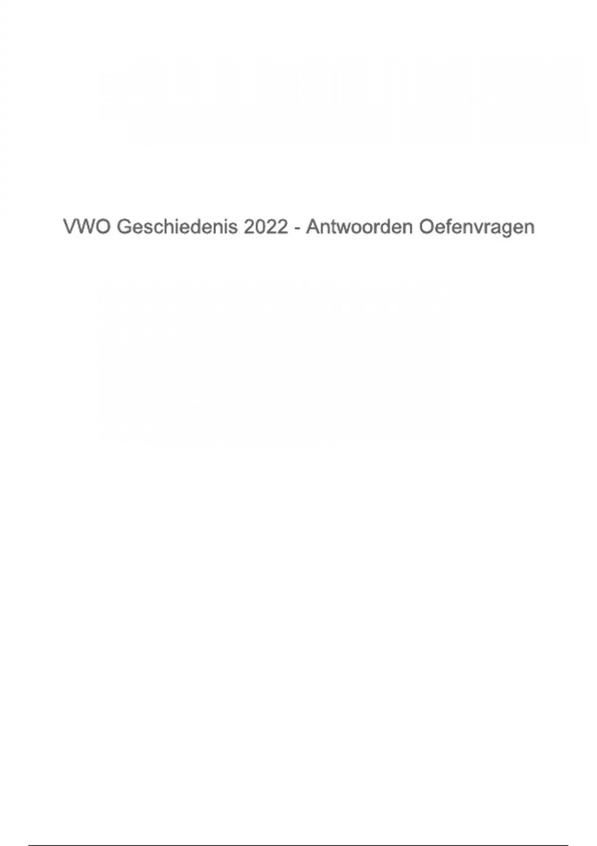 VWO Geschiedenis 2022 - Antwoorden Oefenvragen