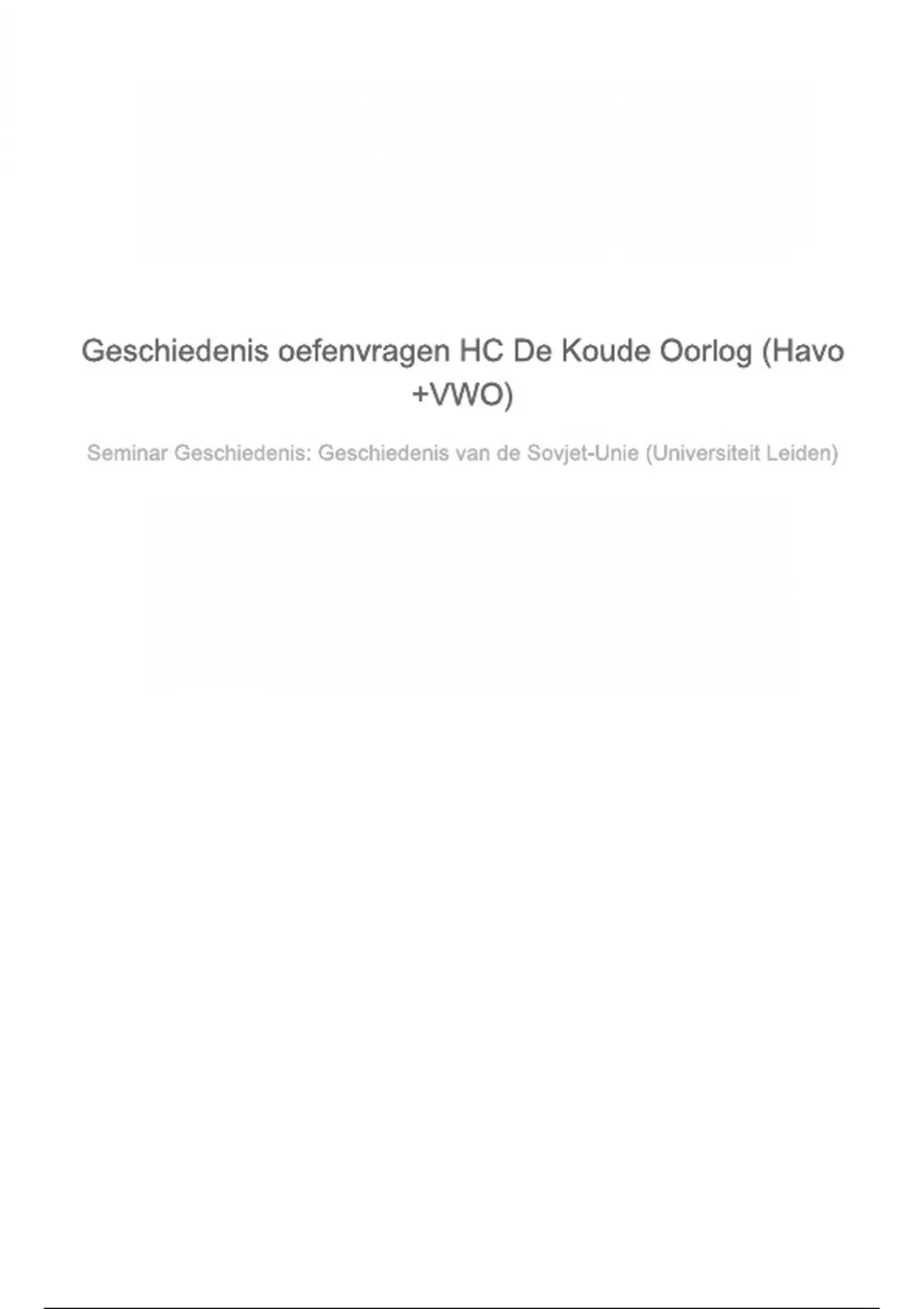 Zusammenfassung Geschiedenis oefenvragen HC De Koude Oorlog (Havo+VWO)