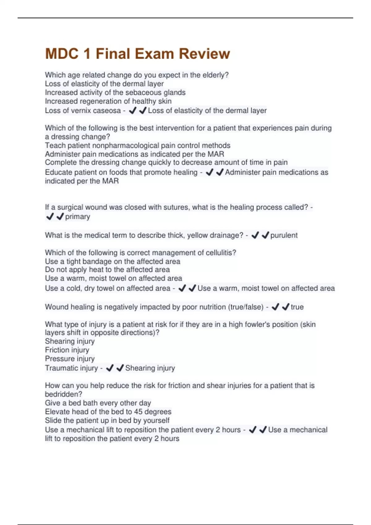 MDC 1 Final Exam Review Questions and Answers Fully Solved 100%