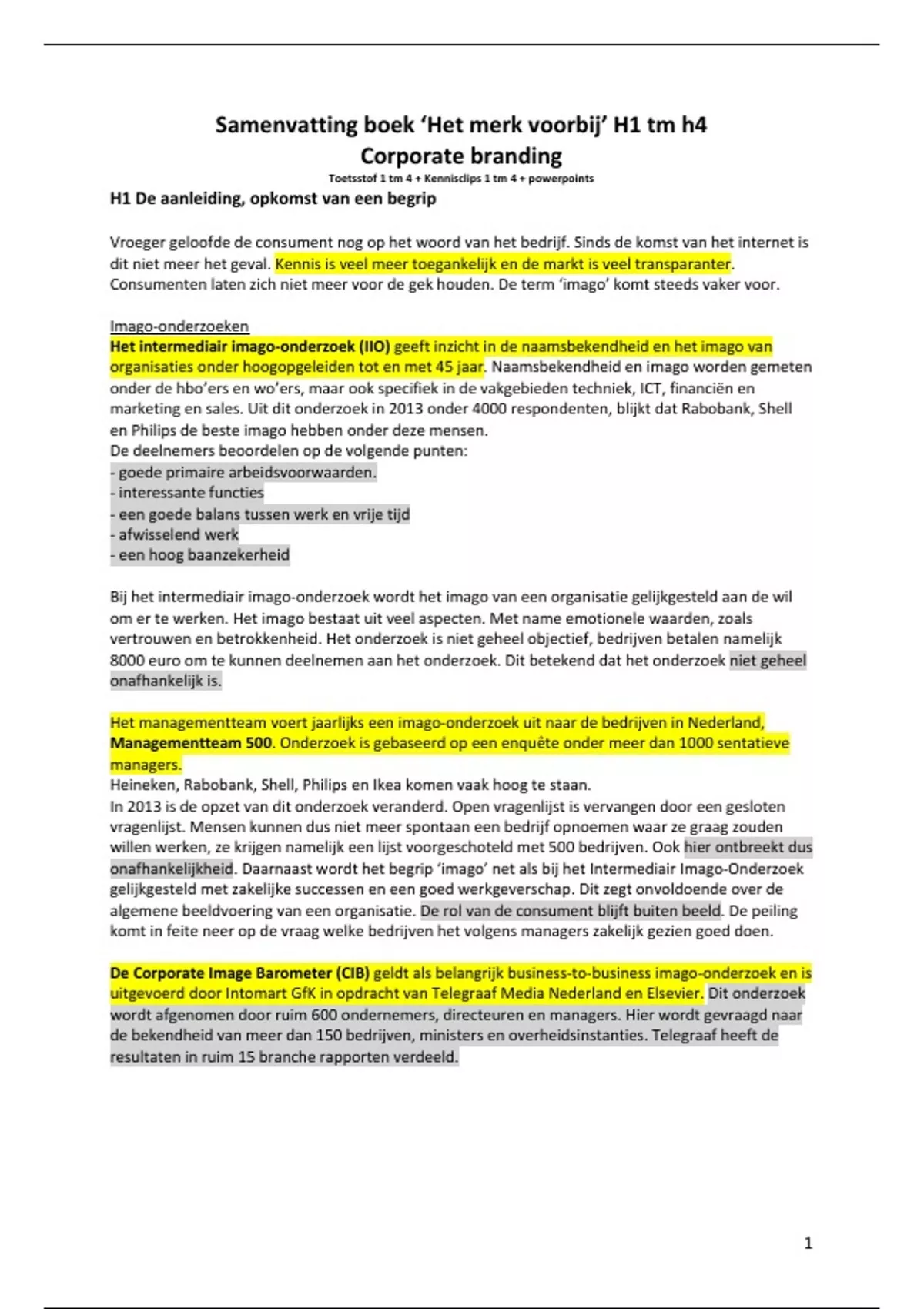 Samenvatting boek ‘Het merk voorbij’ H1 tm h4