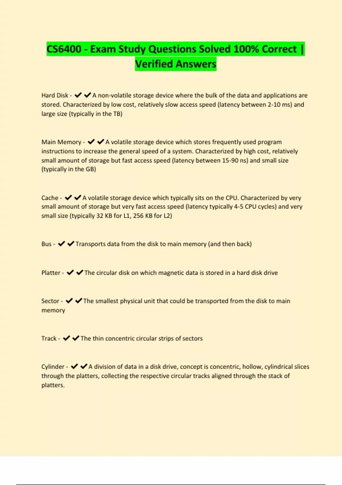 Hard Disk - ✔✔A non-volatile storage device where the bulk of the data and applications are