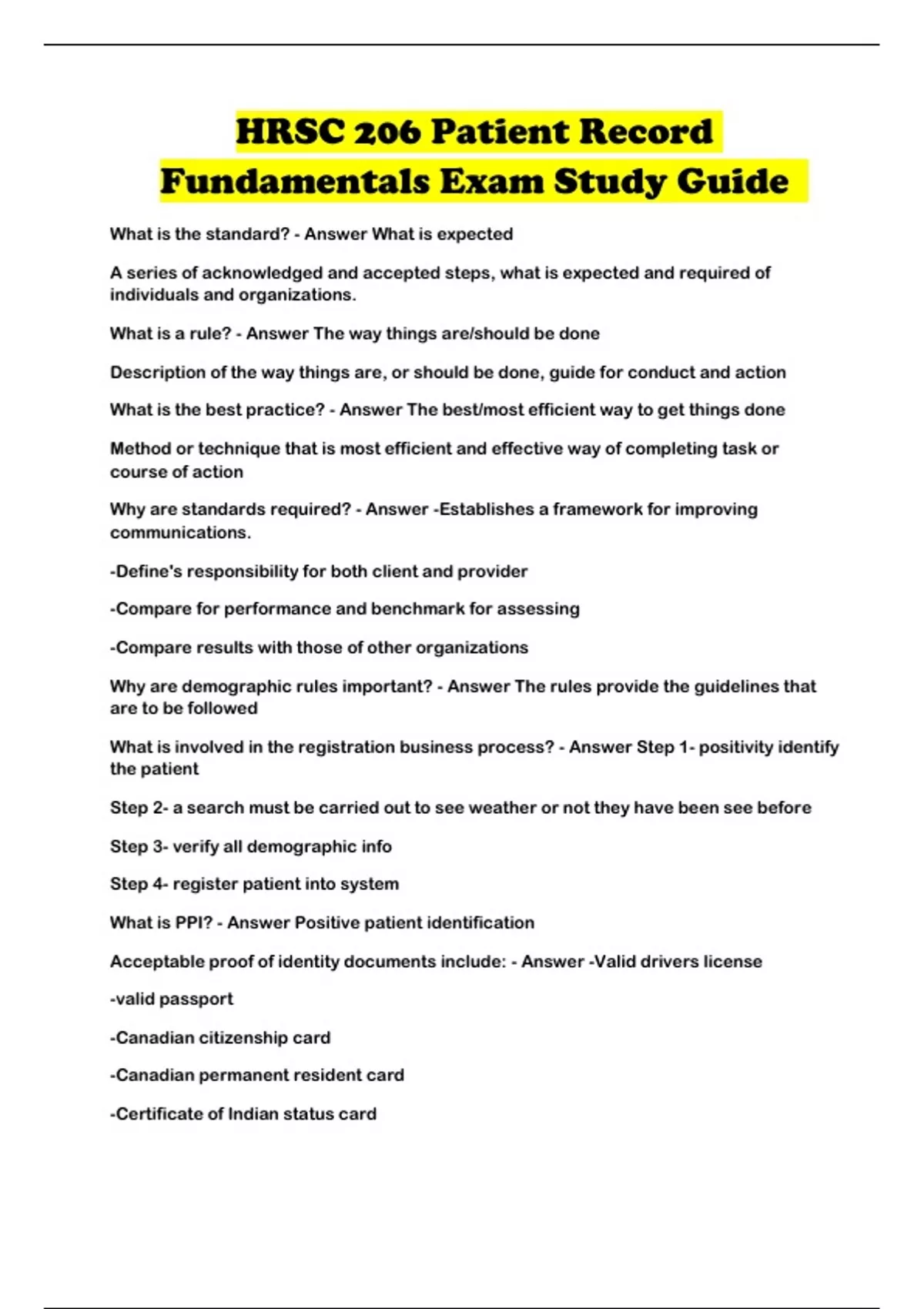 HRSC 206 Patient Record Fundamentals Exam Study Guide ...