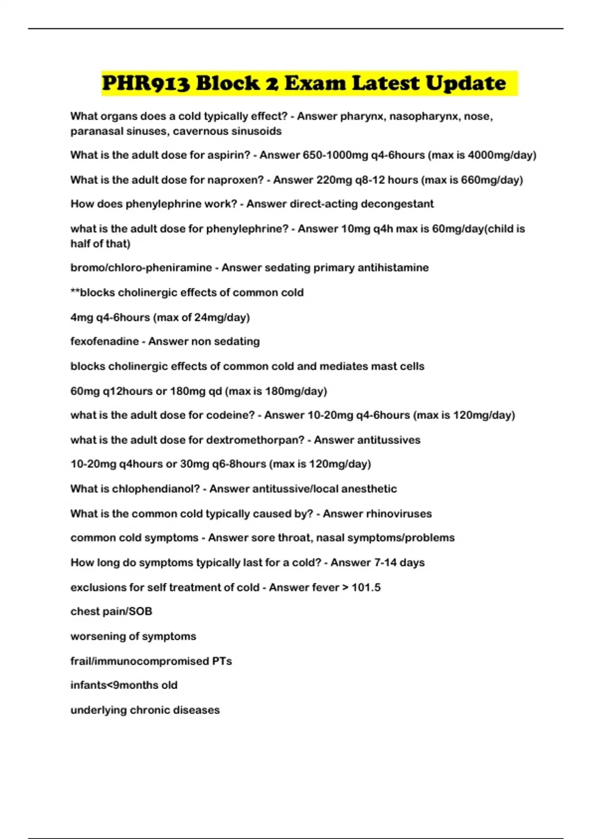 What organs does a cold typically effect? - Answer pharynx, nasopharynx, nose,