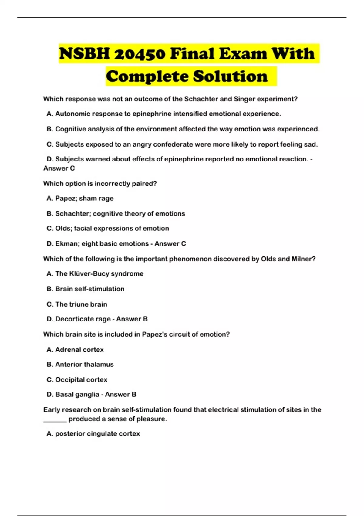 NSBH 20450 Final Exam With