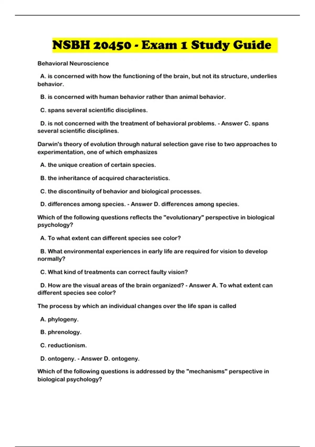 D. the biological mechanisms of behavior. - Answer D. the biological mechanisms of