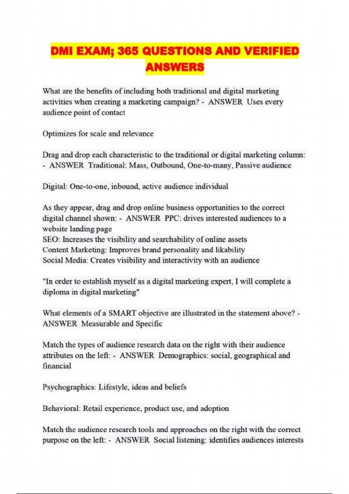DMI EXAM; 365 QUESTIONS AND VERIFIED ANSWERS...