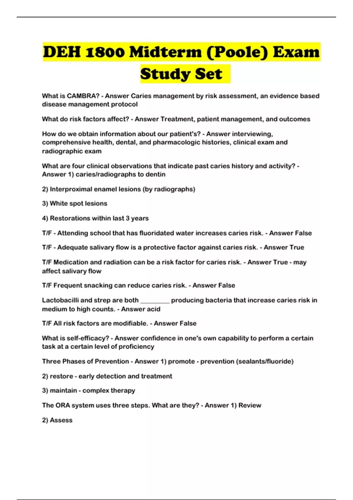 DEH 1800 Midterm (Poole) Exam