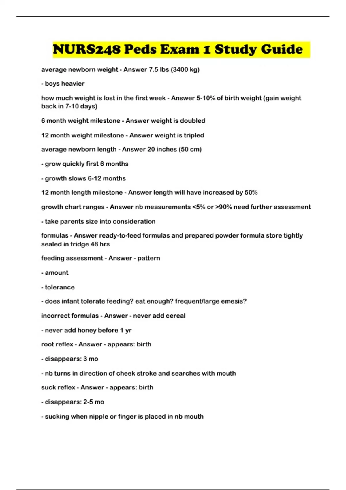 NURS248 Peds Exam 1 Study Guide ...