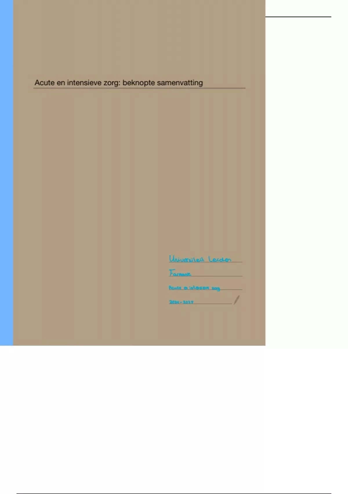 Acute & intensieve zorg: beknopte samenvatting