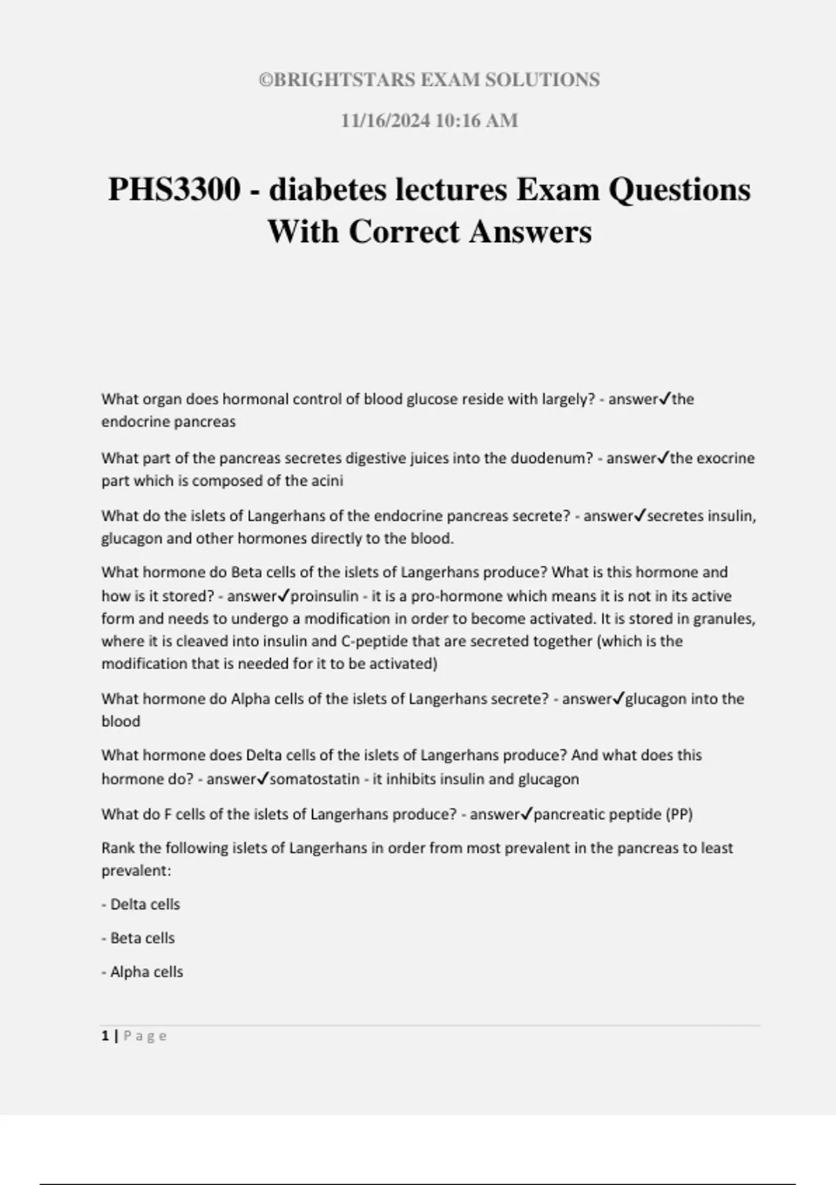 PHS3300 - diabetes lectures Exam Questions