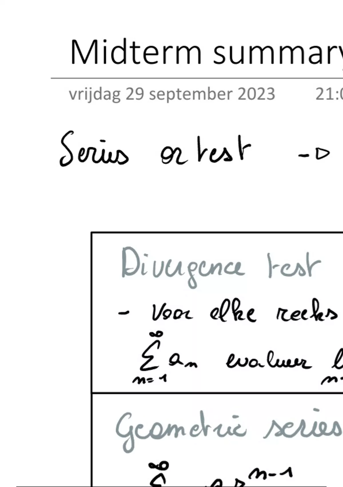 Samenvatting Calculus (Rijen en reeksen) - Wiskunde 3 (WBMT2048)