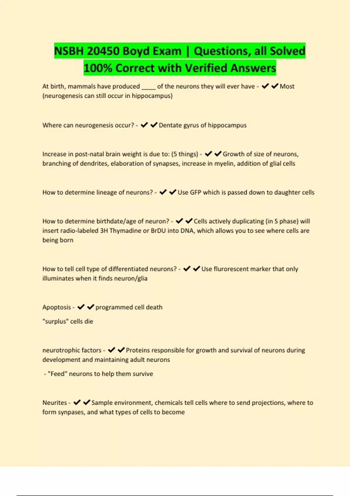 NSBH 20450 Boyd Exam | Questions, all Solved