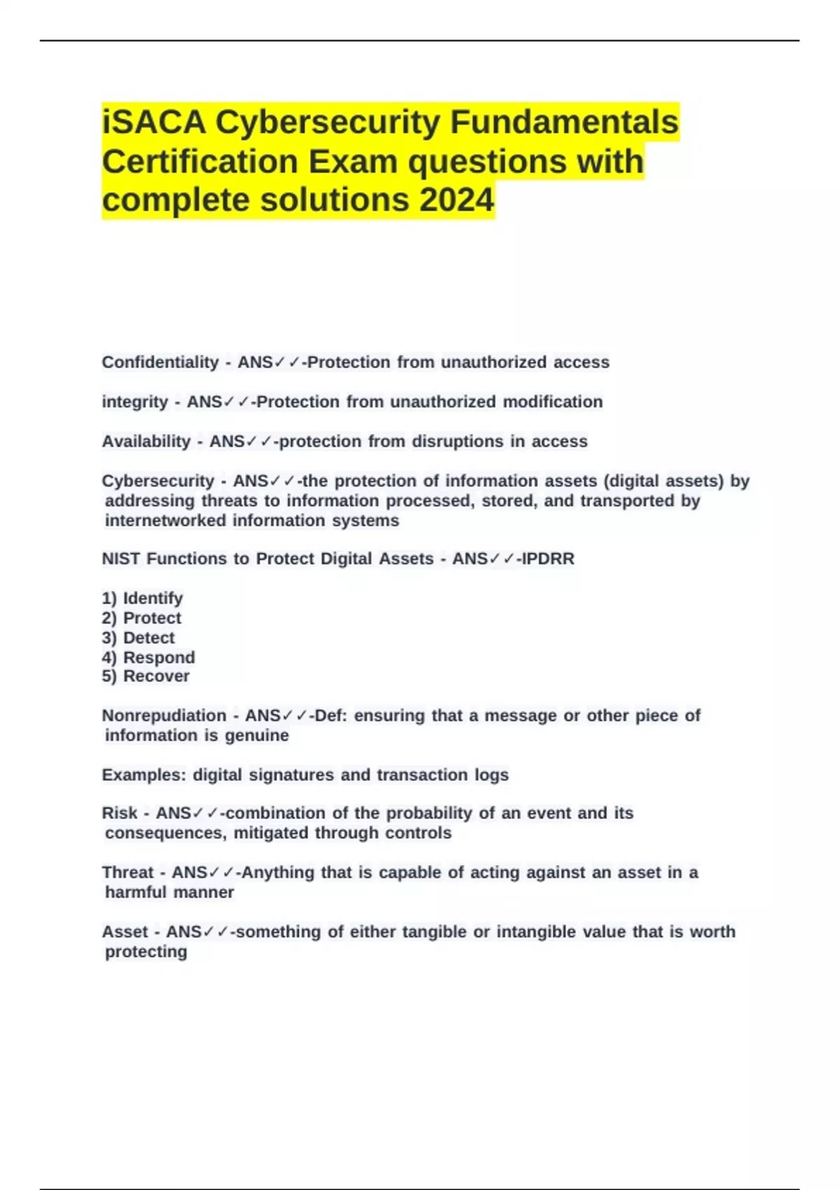 Cybersecurity j- jANS✓✓-the jprotection jof jinformation jassets j(digital jassets) jby