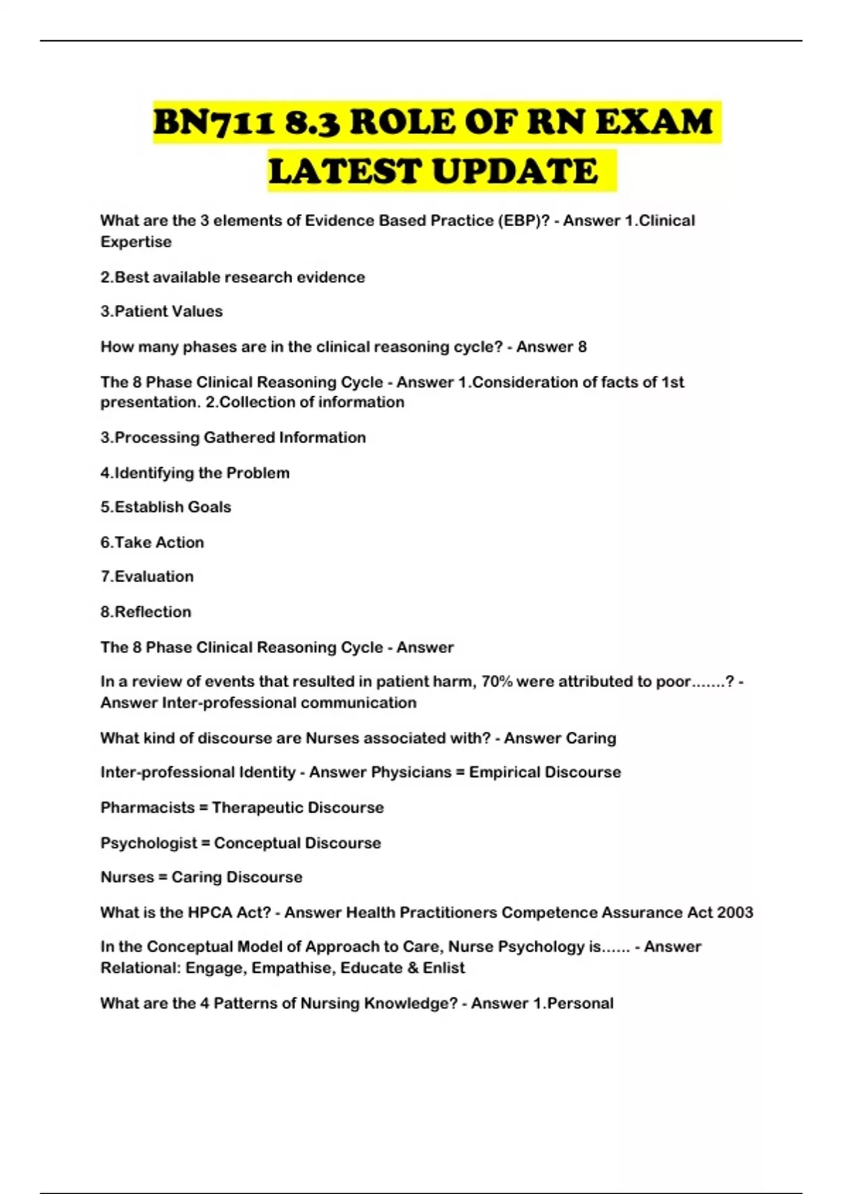 BN711 8.3 ROLE OF RN EXAM LATEST UPDATE ...