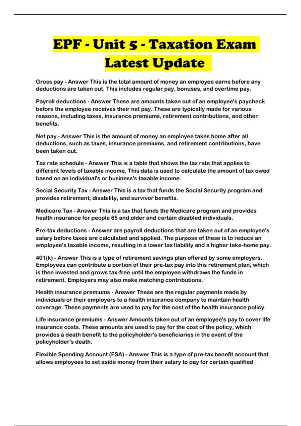 EPF - Unit 5 - Taxation Exam Latest Update ...