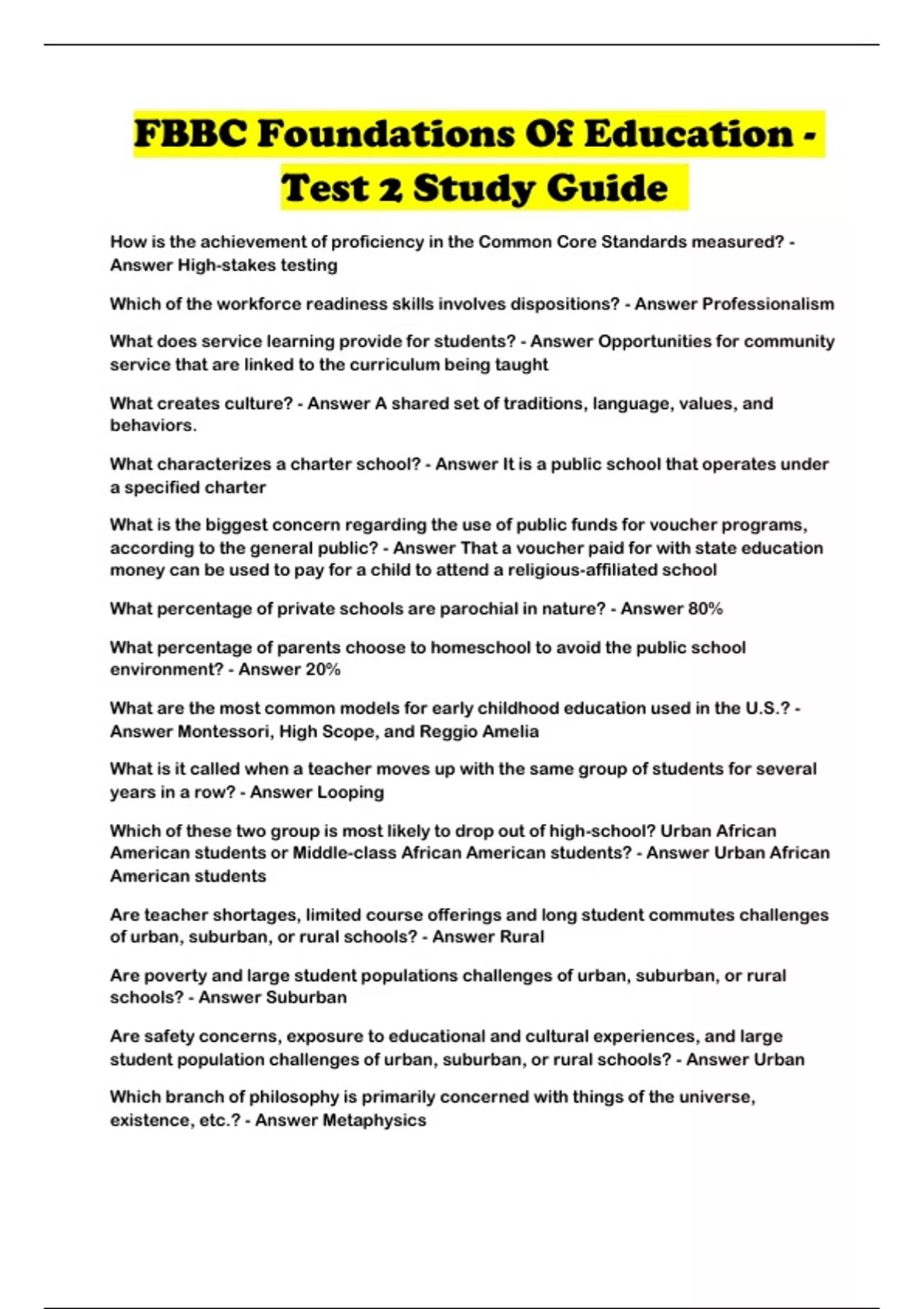FBBC Foundations Of Education - Test 2 Study Guide ...