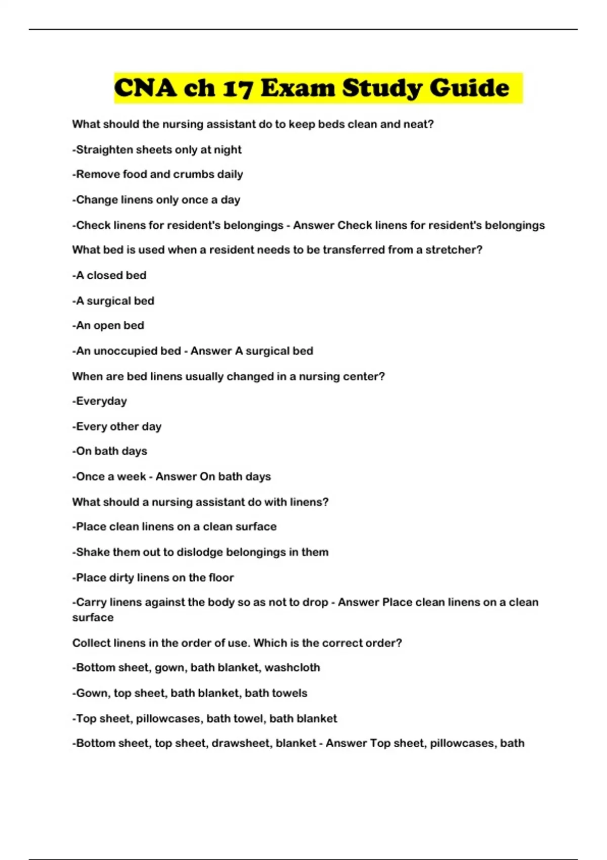 CNA ch 17 Exam Study Guide ...
