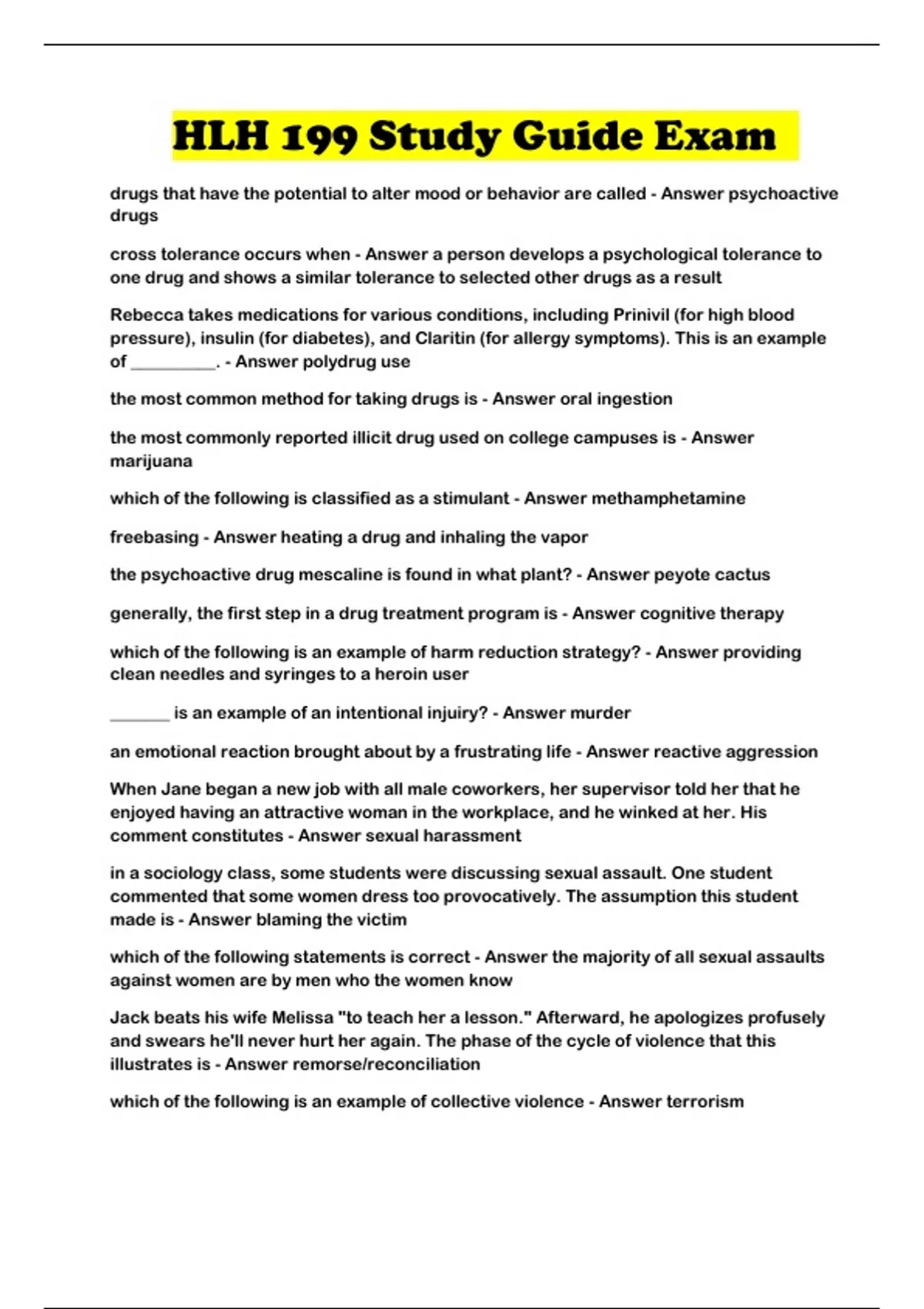 HLH 199 Study Guide Exam ...