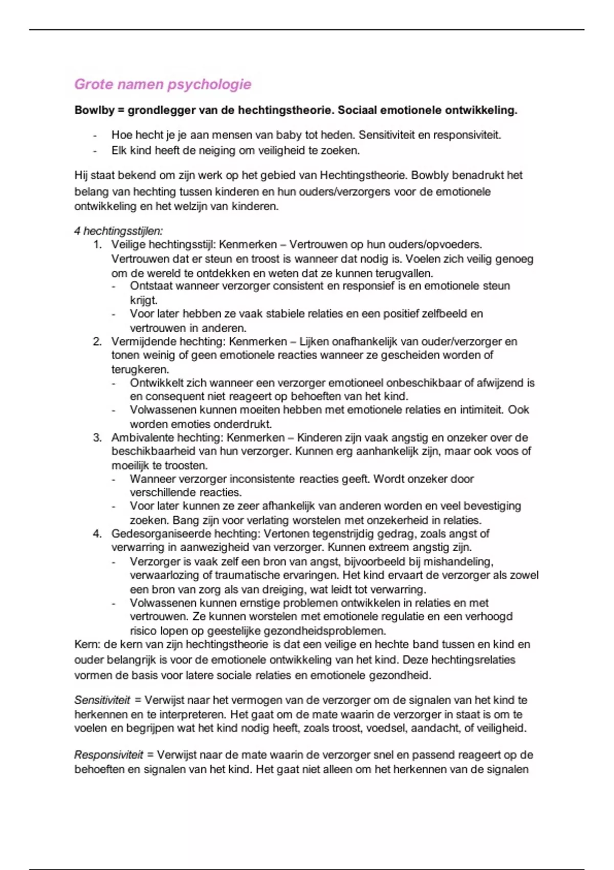 Bowlby = grondlegger van de hechtingstheorie. Sociaal emotionele ontwikkeling.