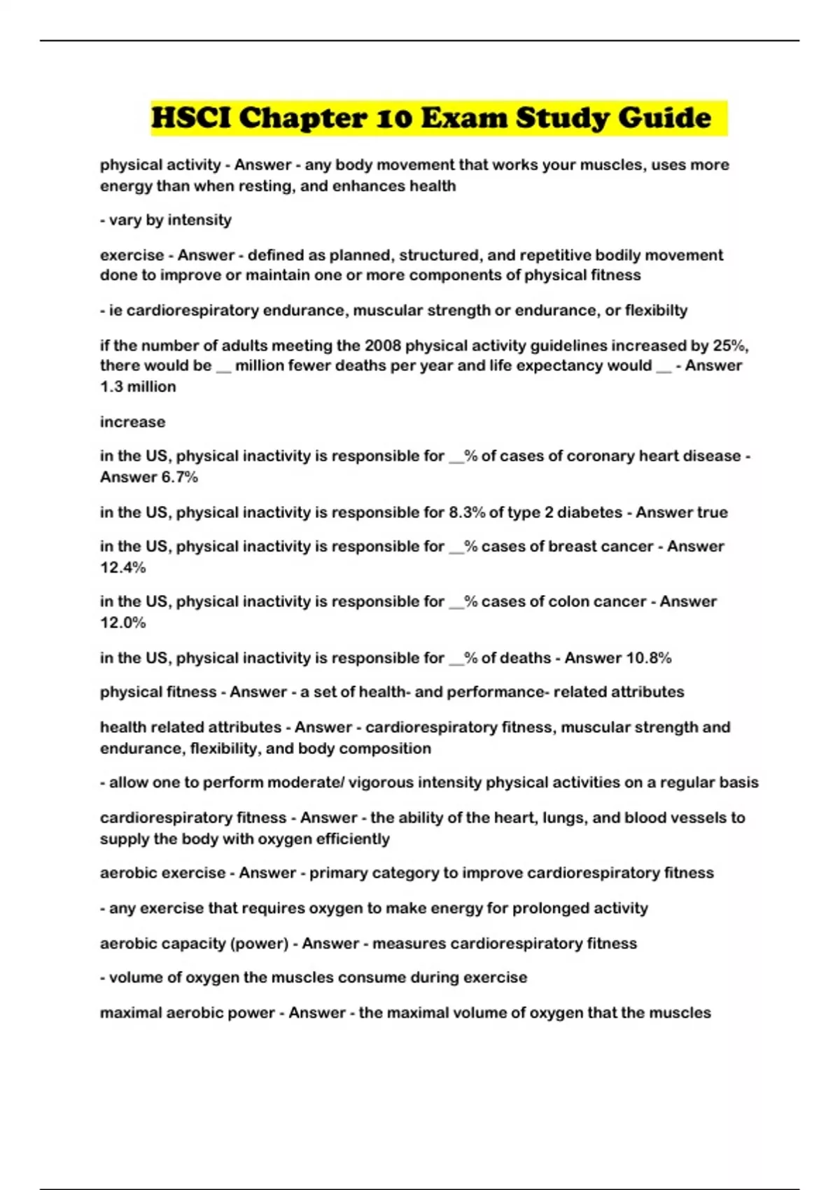HSCI Chapter 10 Exam Study Guide
