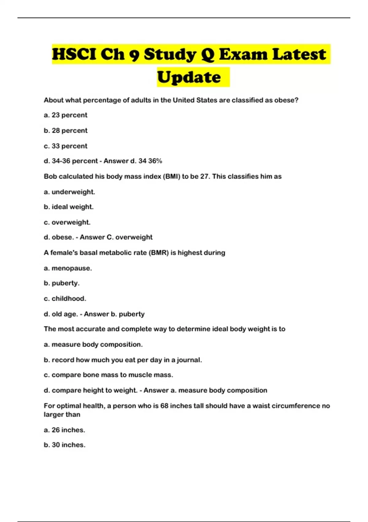 d. obese. - Answer a. underweight