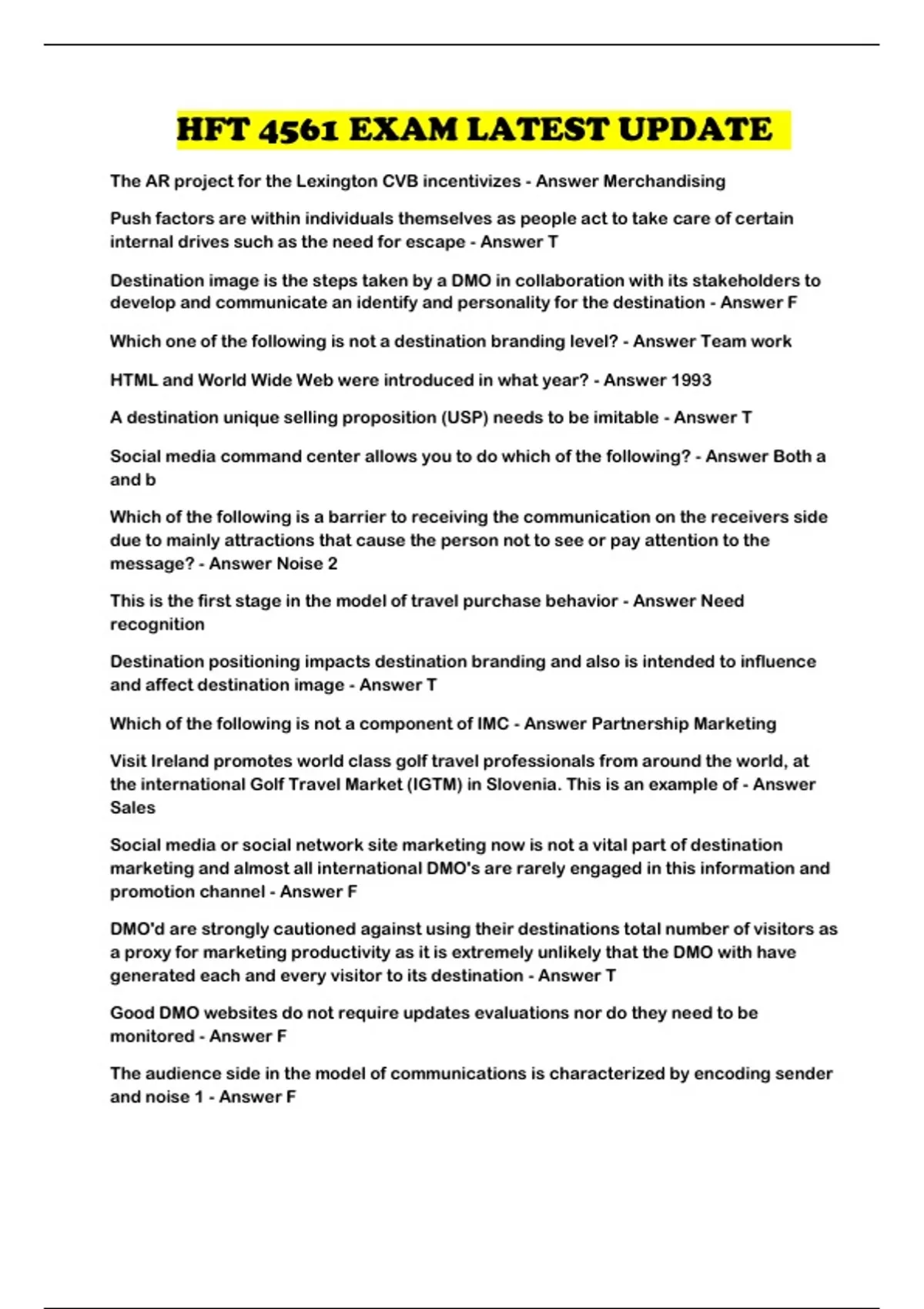 HFT 4561 EXAM LATEST UPDATE