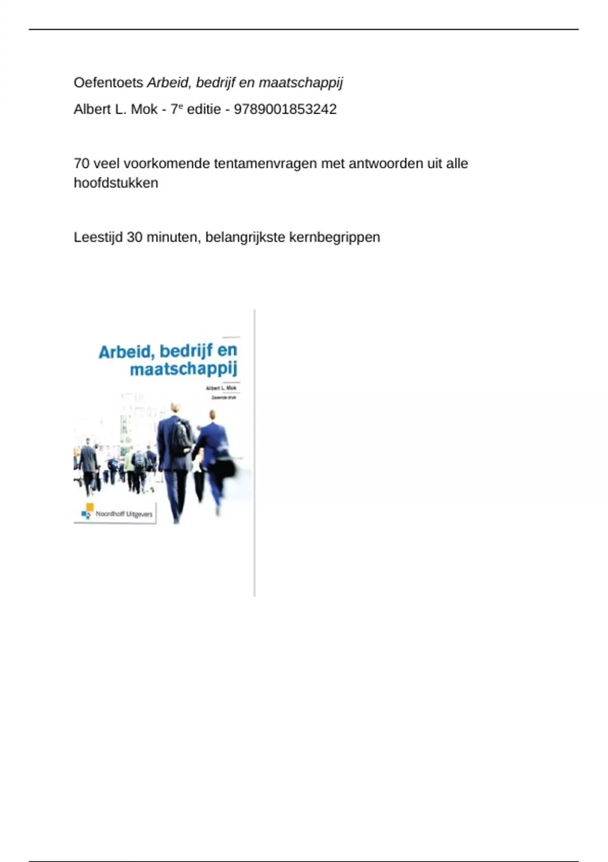 Oefentoets Arbeid, bedrijf en maatschappij Mok, 7e druk - 70 veel voorkomende tentamenvragen met antwoorden