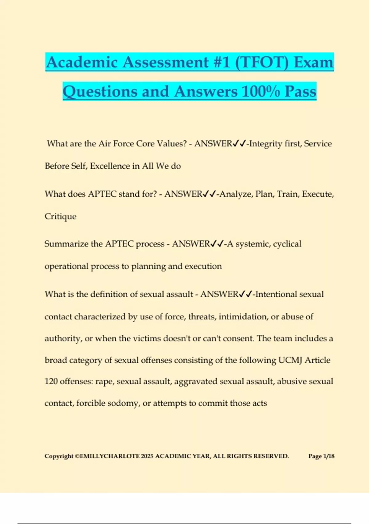 Academic Assessment #1 (TFOT) Exam Questions and Answers 100% Pass