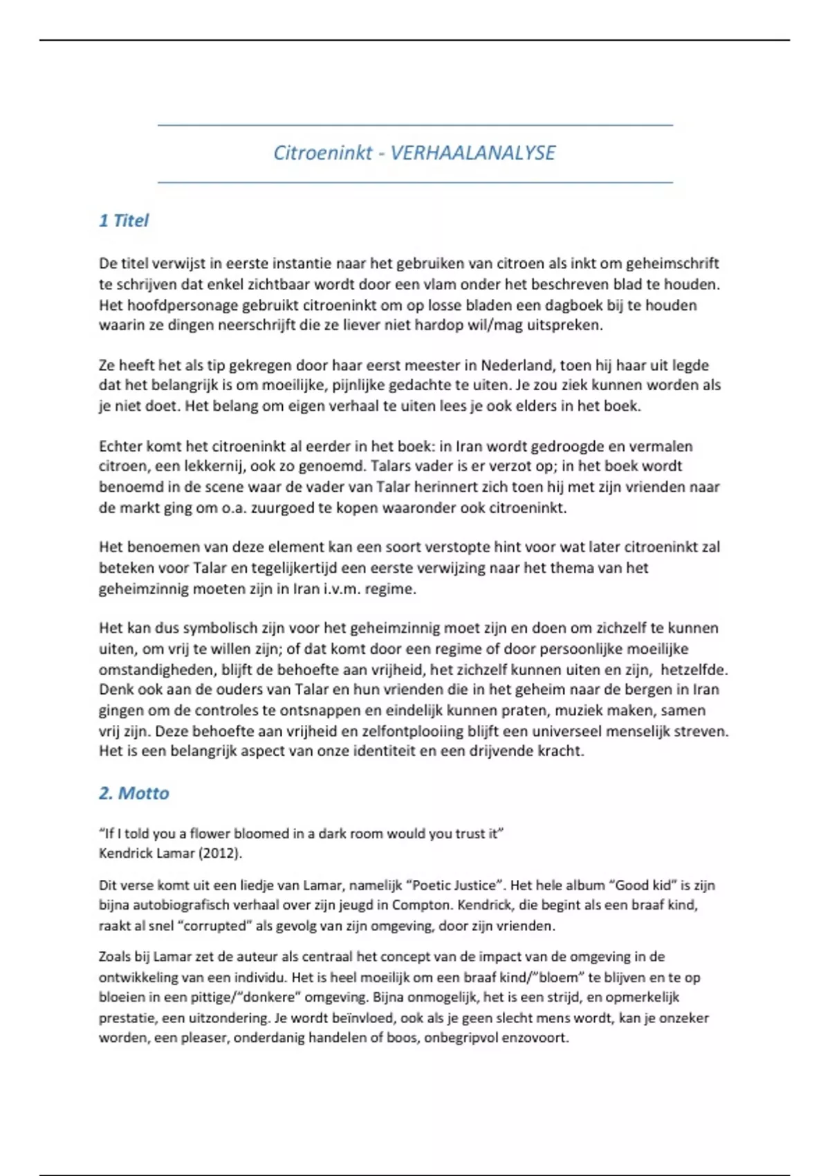 Citroeninkt - VERHAALANALYSE