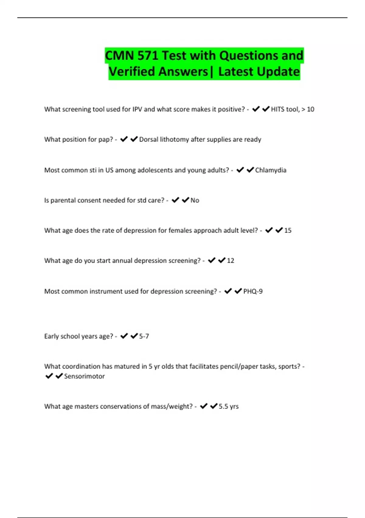 CMN 571 Test with Questions and Verified Answers| Latest Update