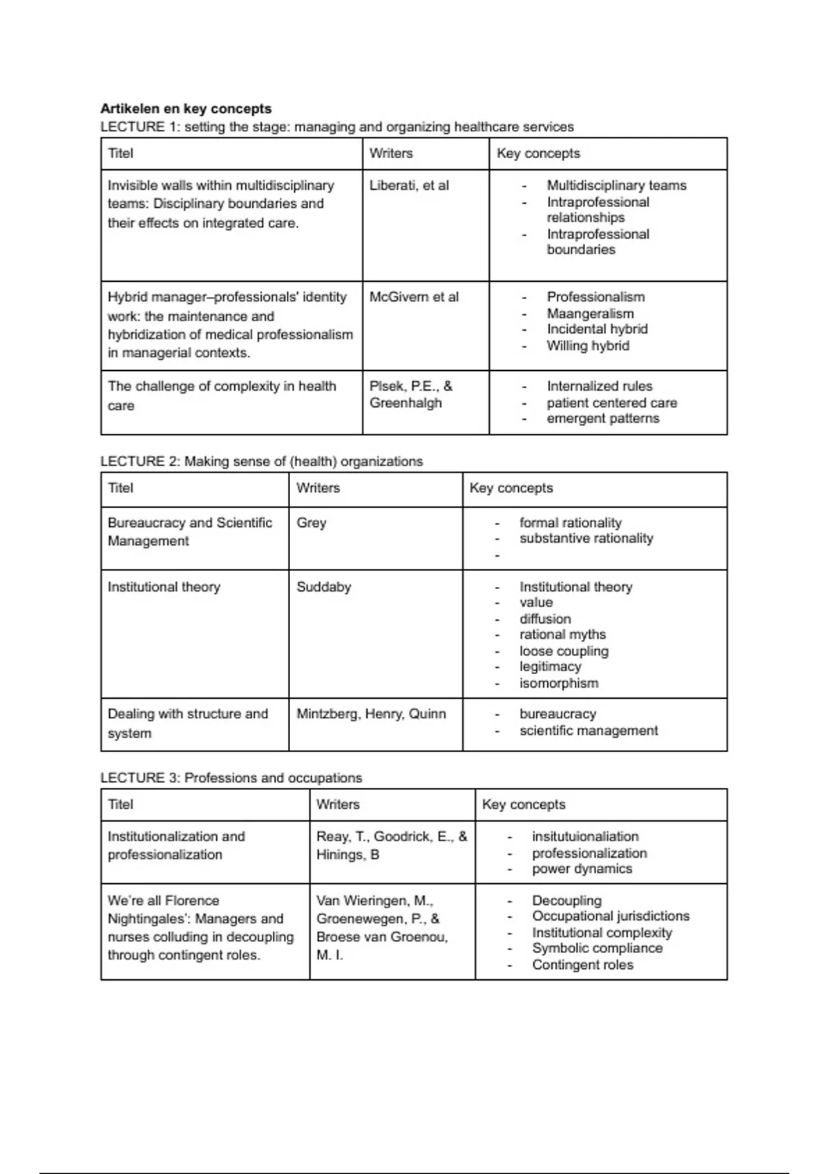 Artikelen en key concepts