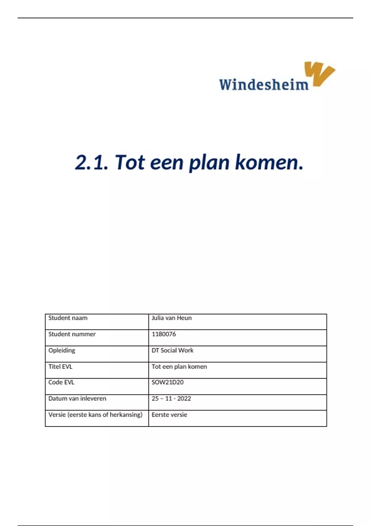 Student naam Julia van Heun