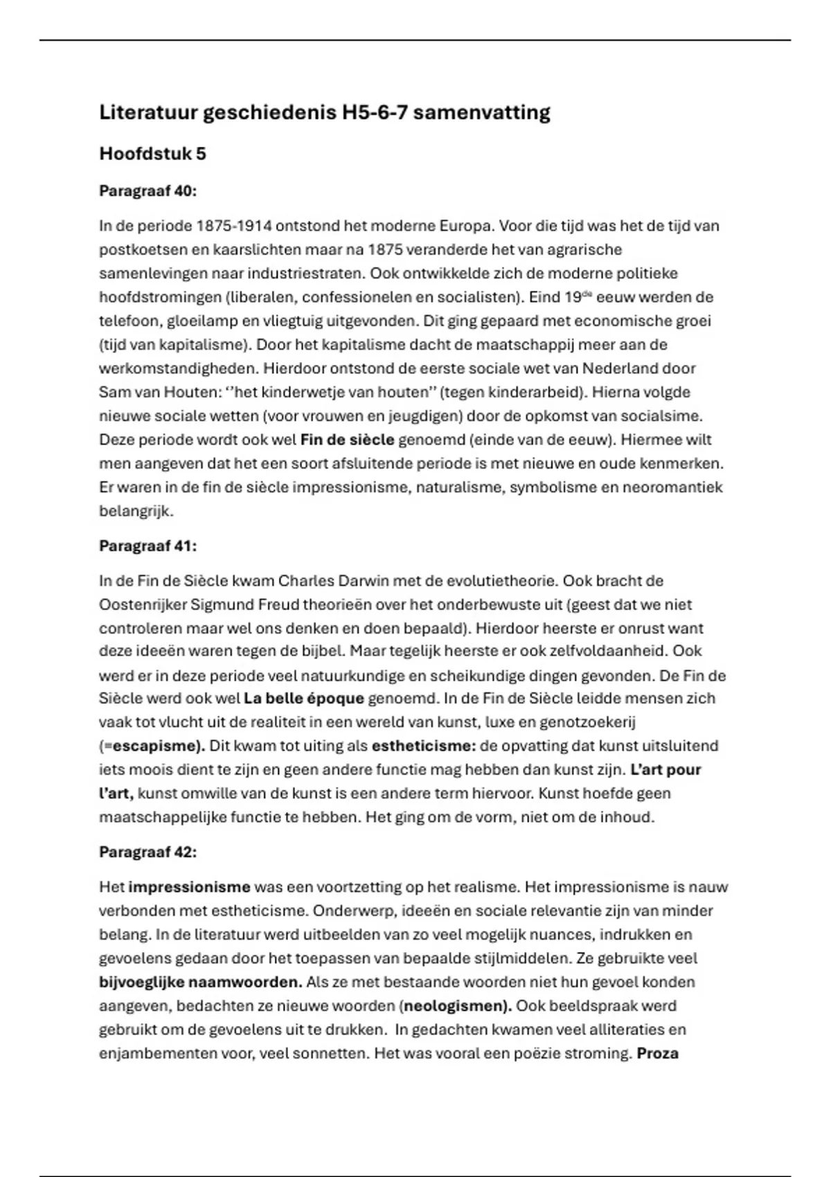 Uitgebreide samenvatting Literatuur geschiedenis H5-6-7