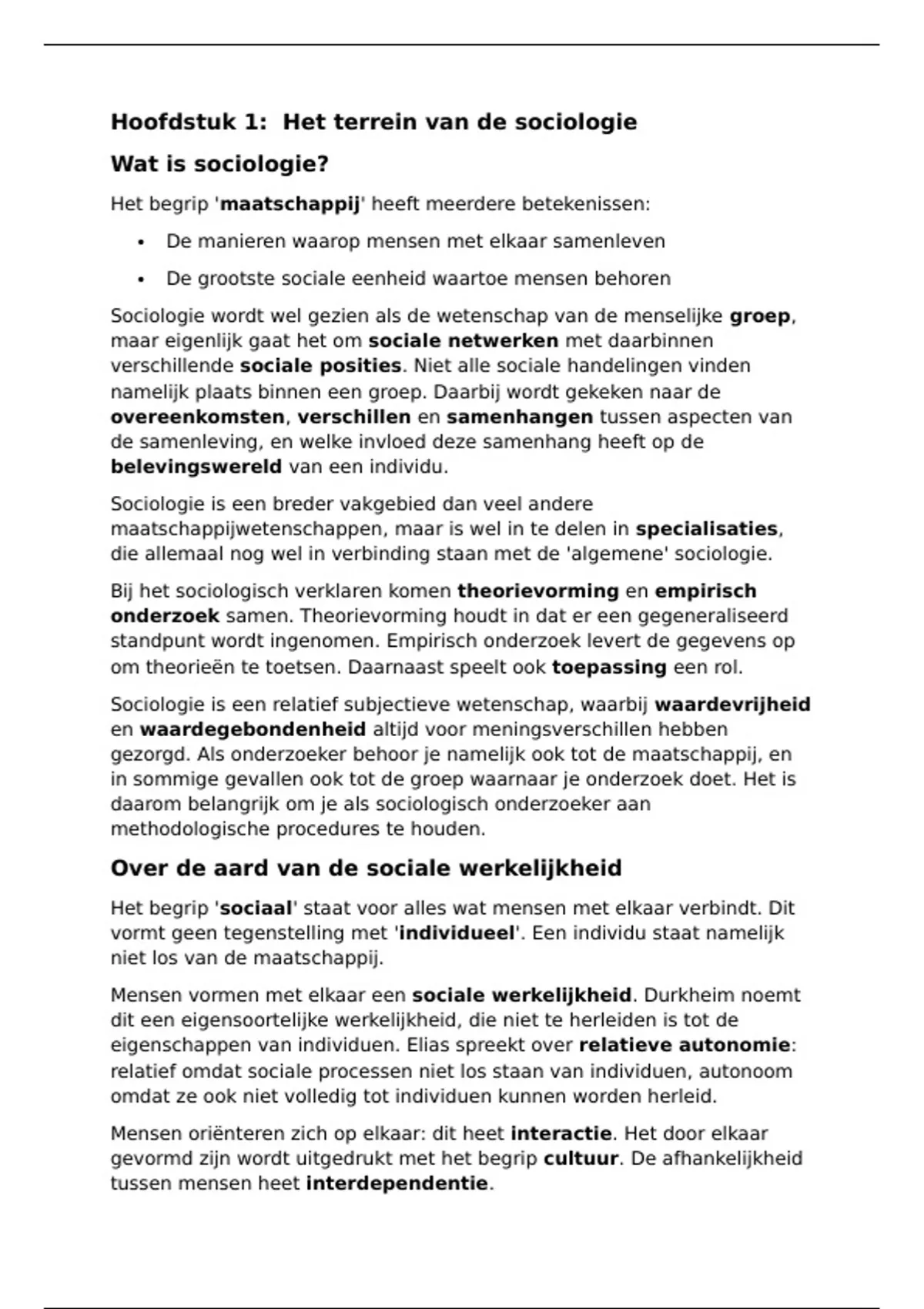 Samenvatting Sociologie H1. - 1e jaar Social Work