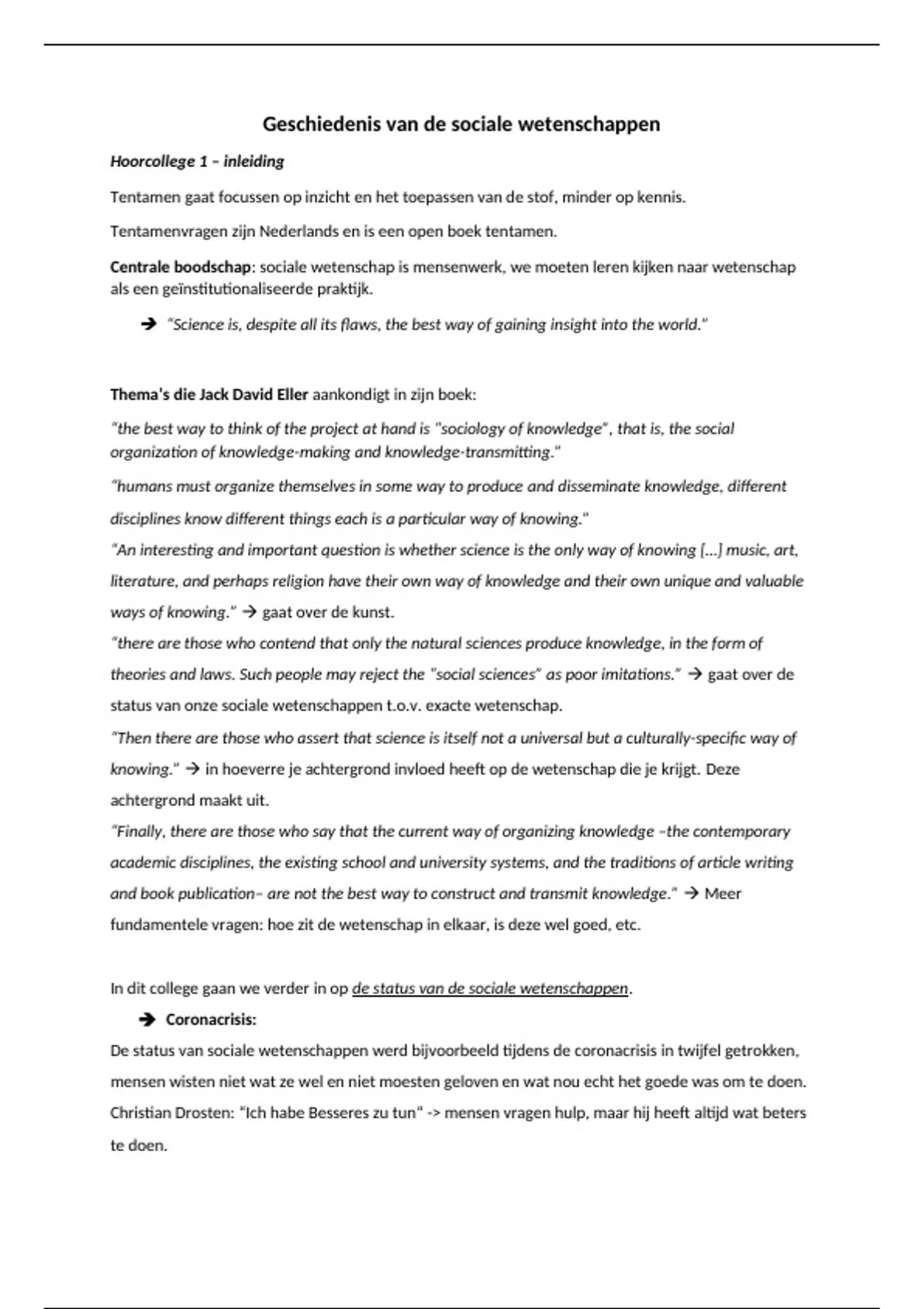 In dit college gaan we verder in op de status van de sociale wetenschappen.