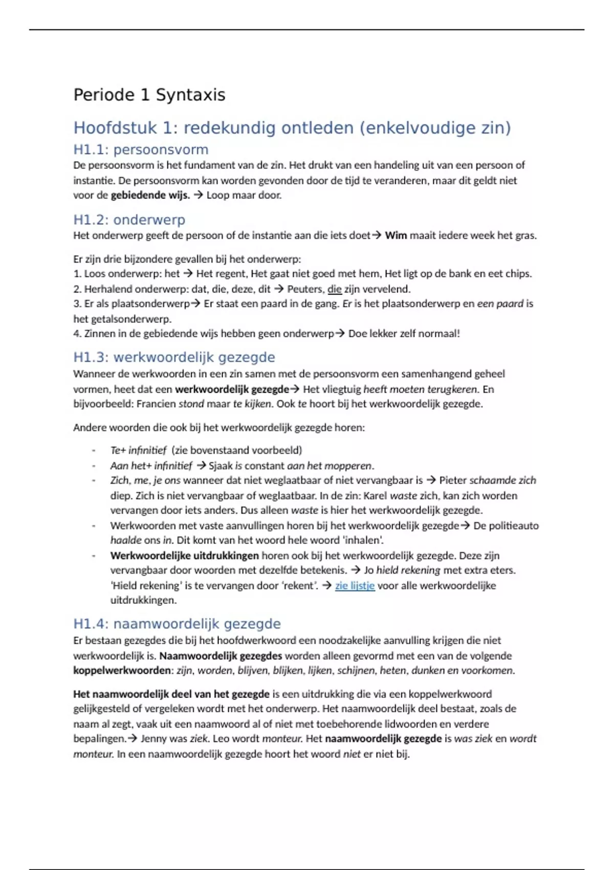 Hoofdstuk 1: redekundig ontleden (enkelvoudige zin)