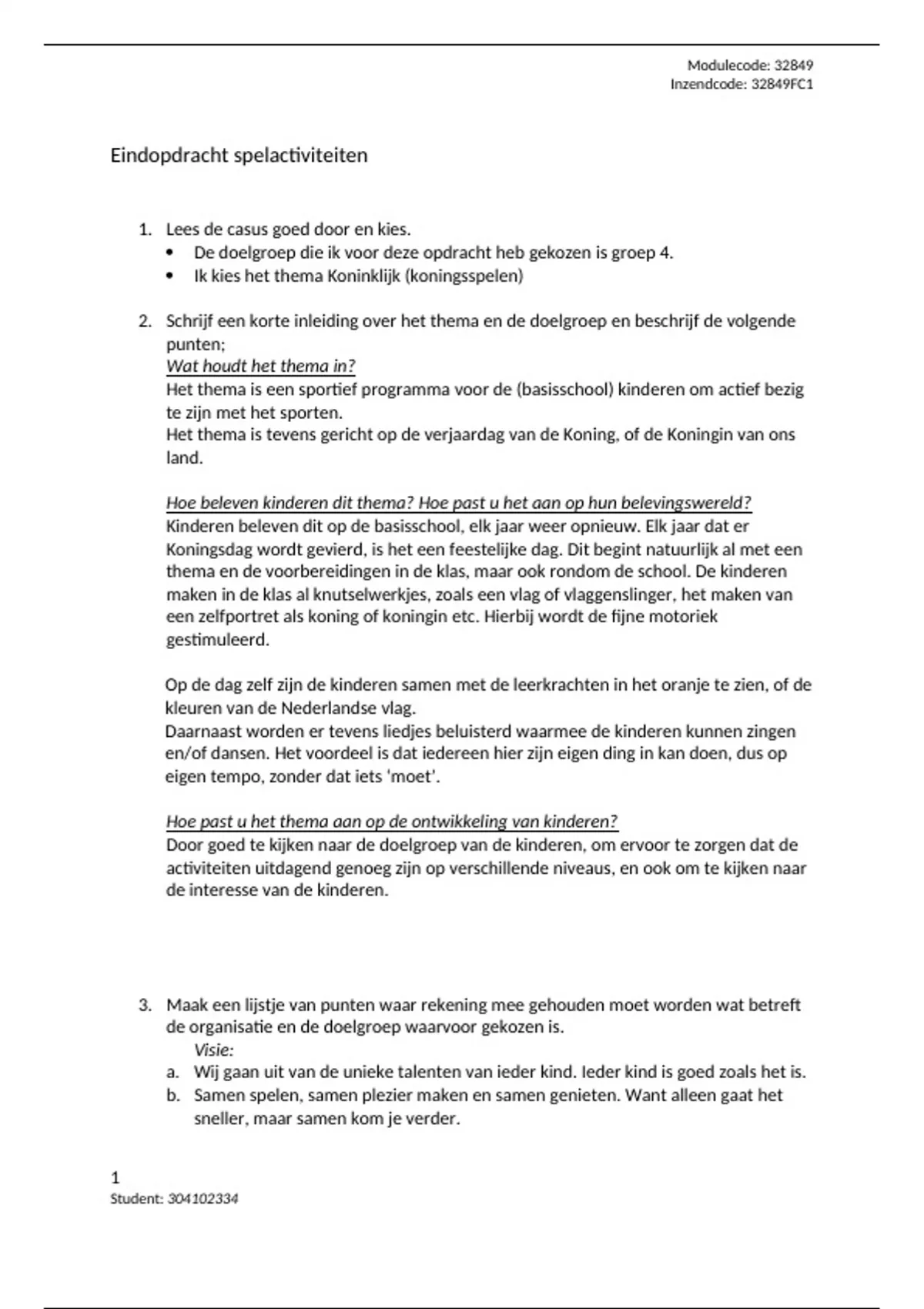 Eindopdracht spelactiviteiten