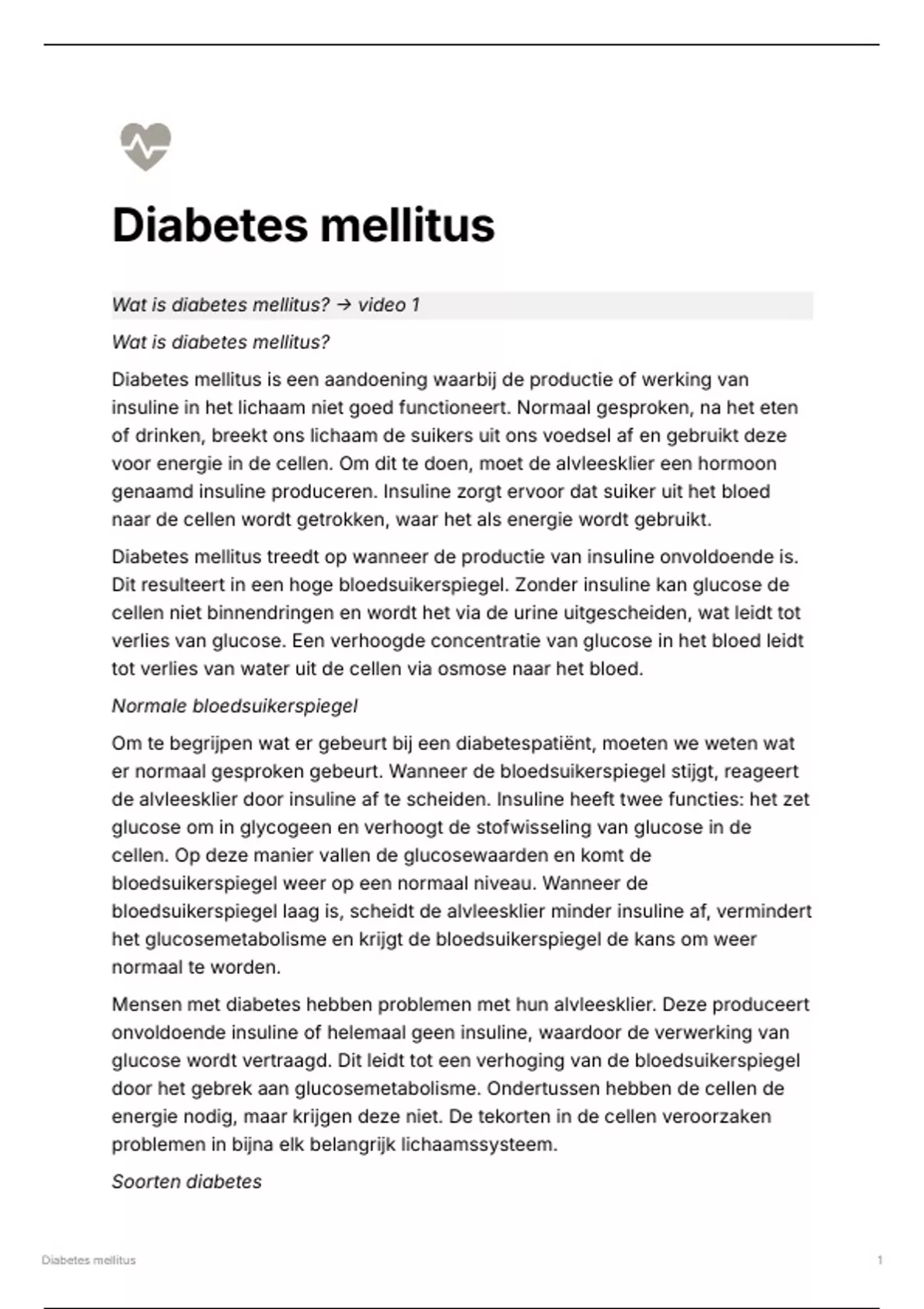Samenvatting chronische aandoeningen over diabetes mellitus