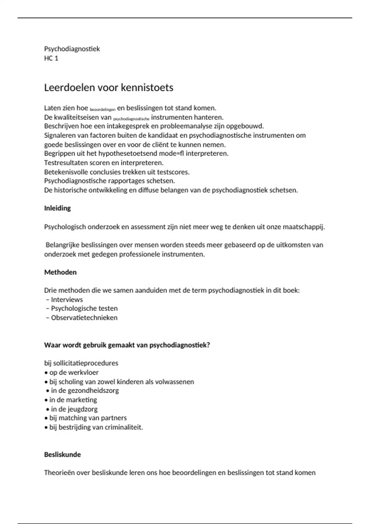 Waar wordt gebruik gemaakt van psychodiagnostiek?