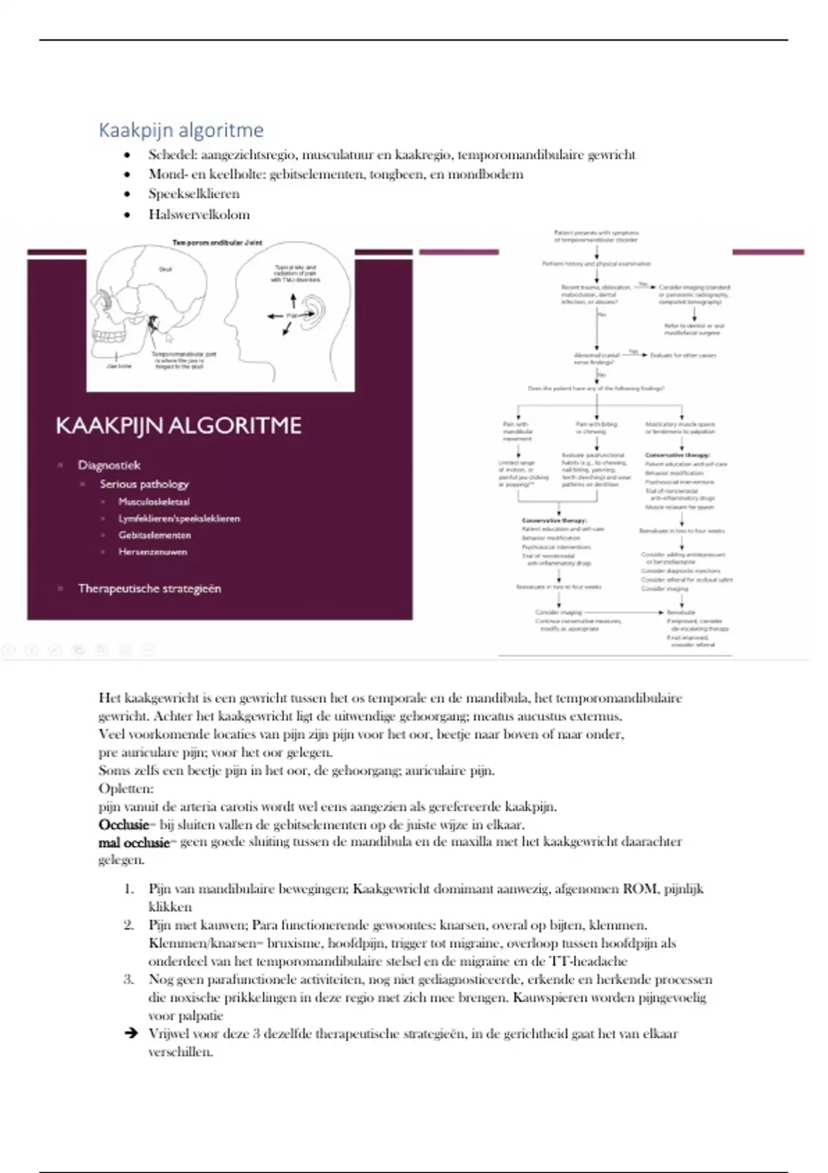 • Schedel: aangezichtsregio, musculatuur en kaakregio, temporomandibulaire gewricht