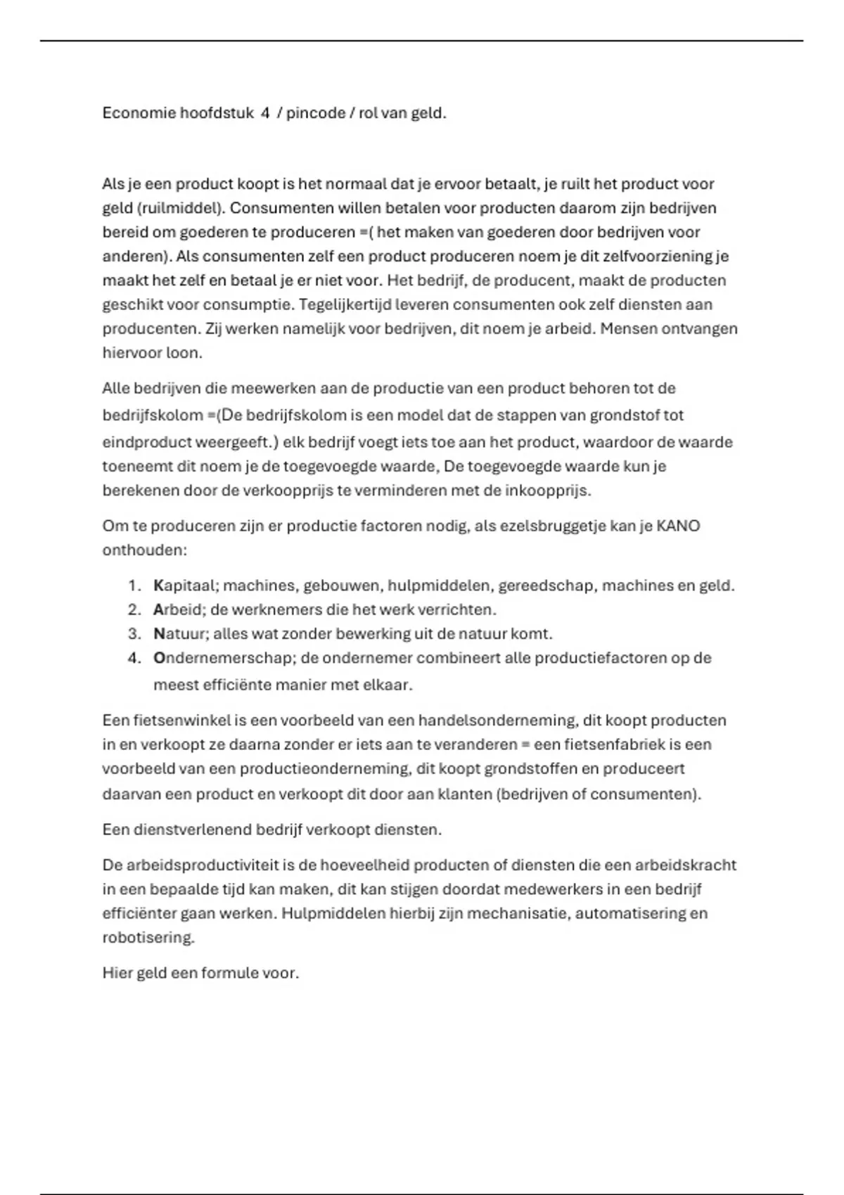 Om te produceren zijn er productie factoren nodig, als ezelsbruggetje kan je KANO