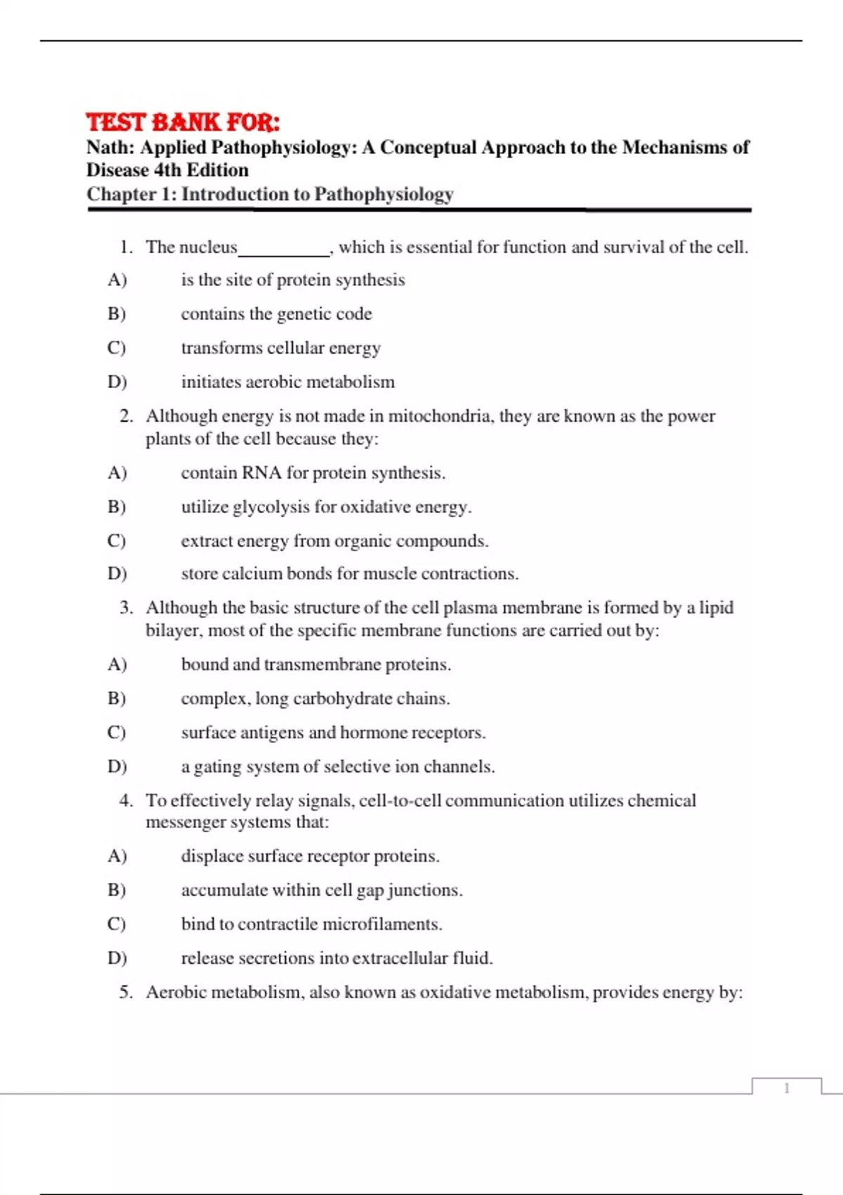 Test Bank for: