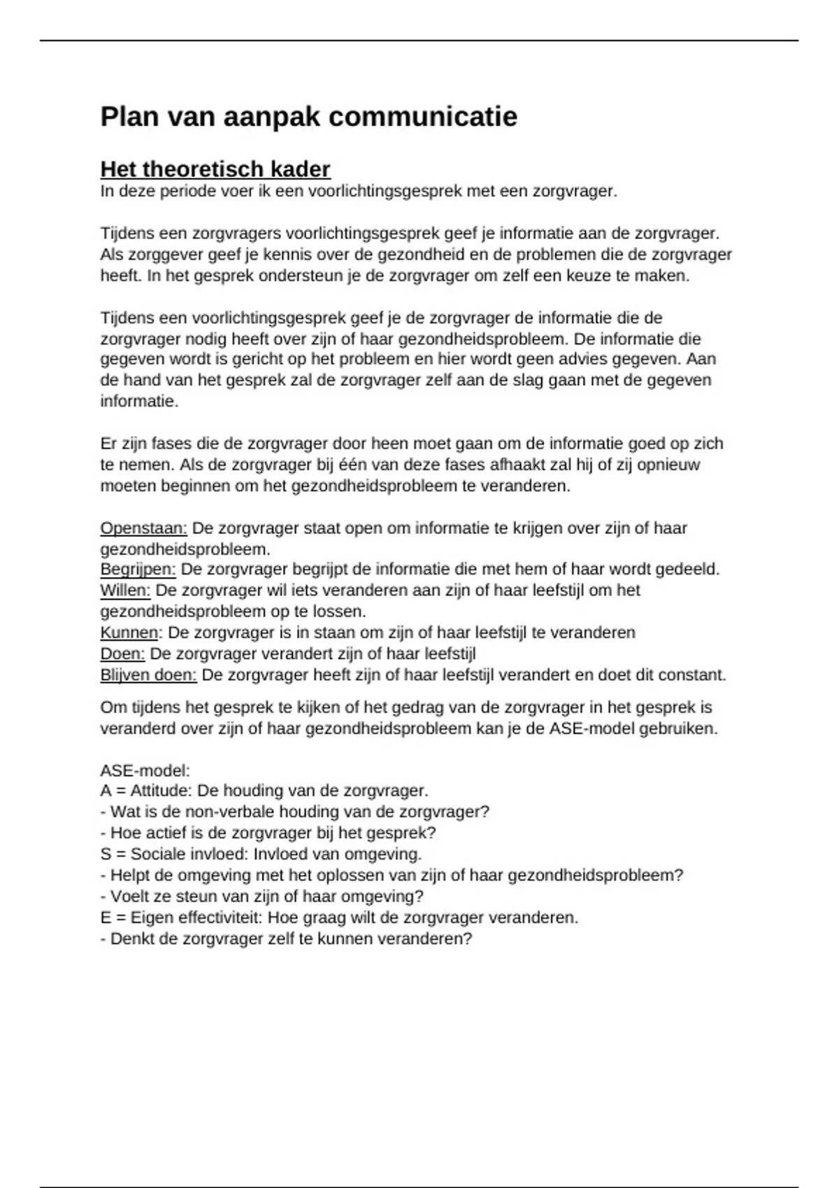 veranderd over zijn of haar gezondheidsprobleem kan je de ASE-model gebruiken.