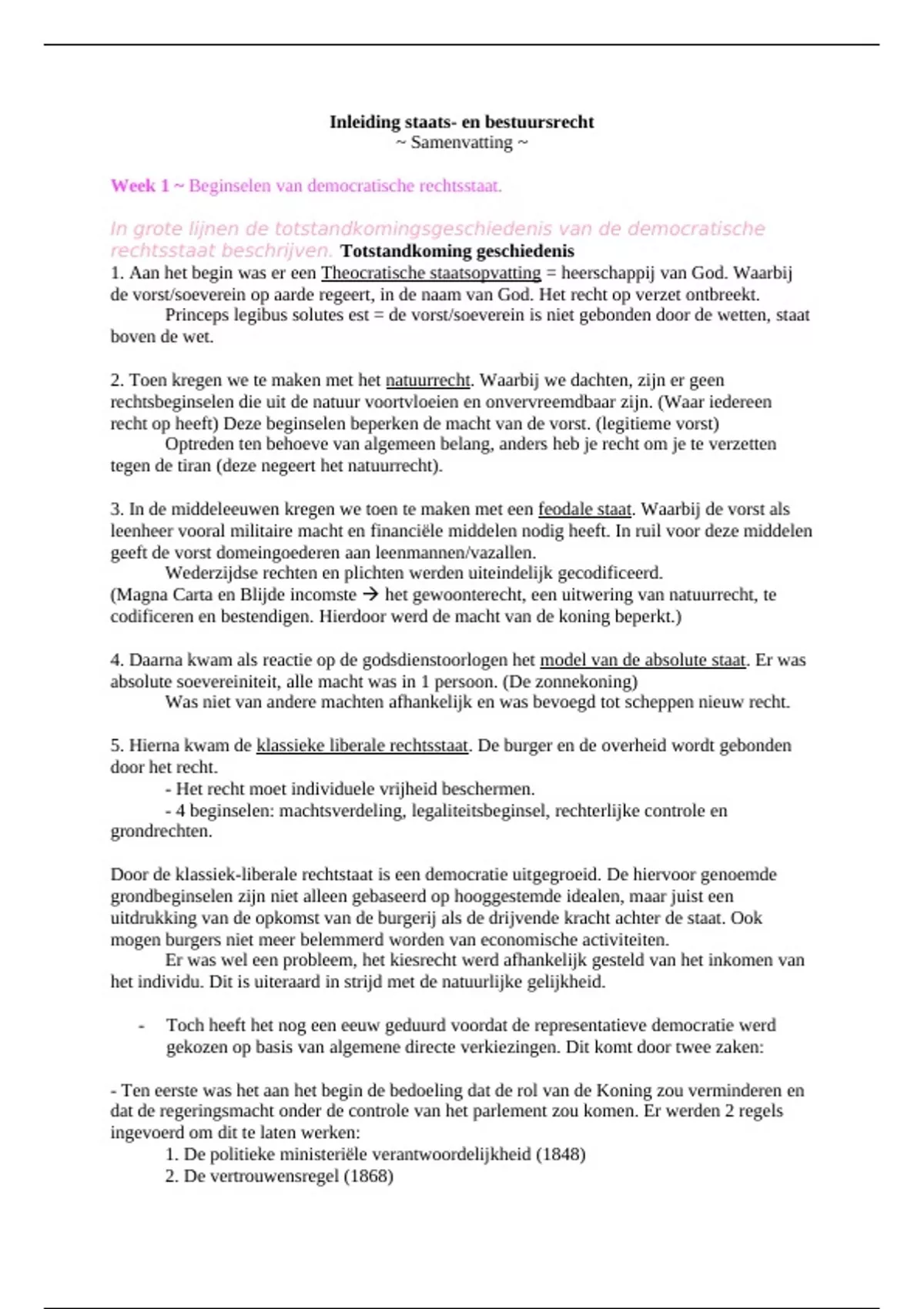 Week 1 ~ Beginselen van democratische rechtsstaat.