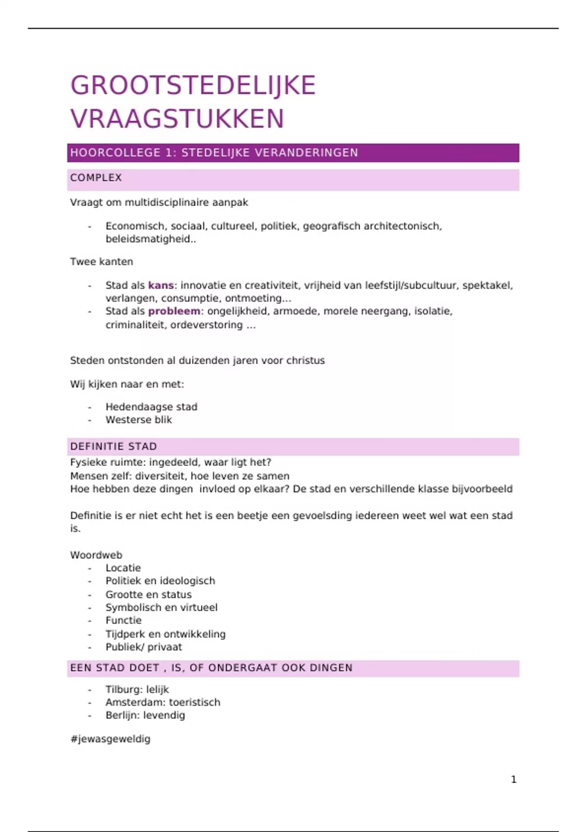 HOORCOLLEGE 1: STEDELIJKE VERANDERINGEN